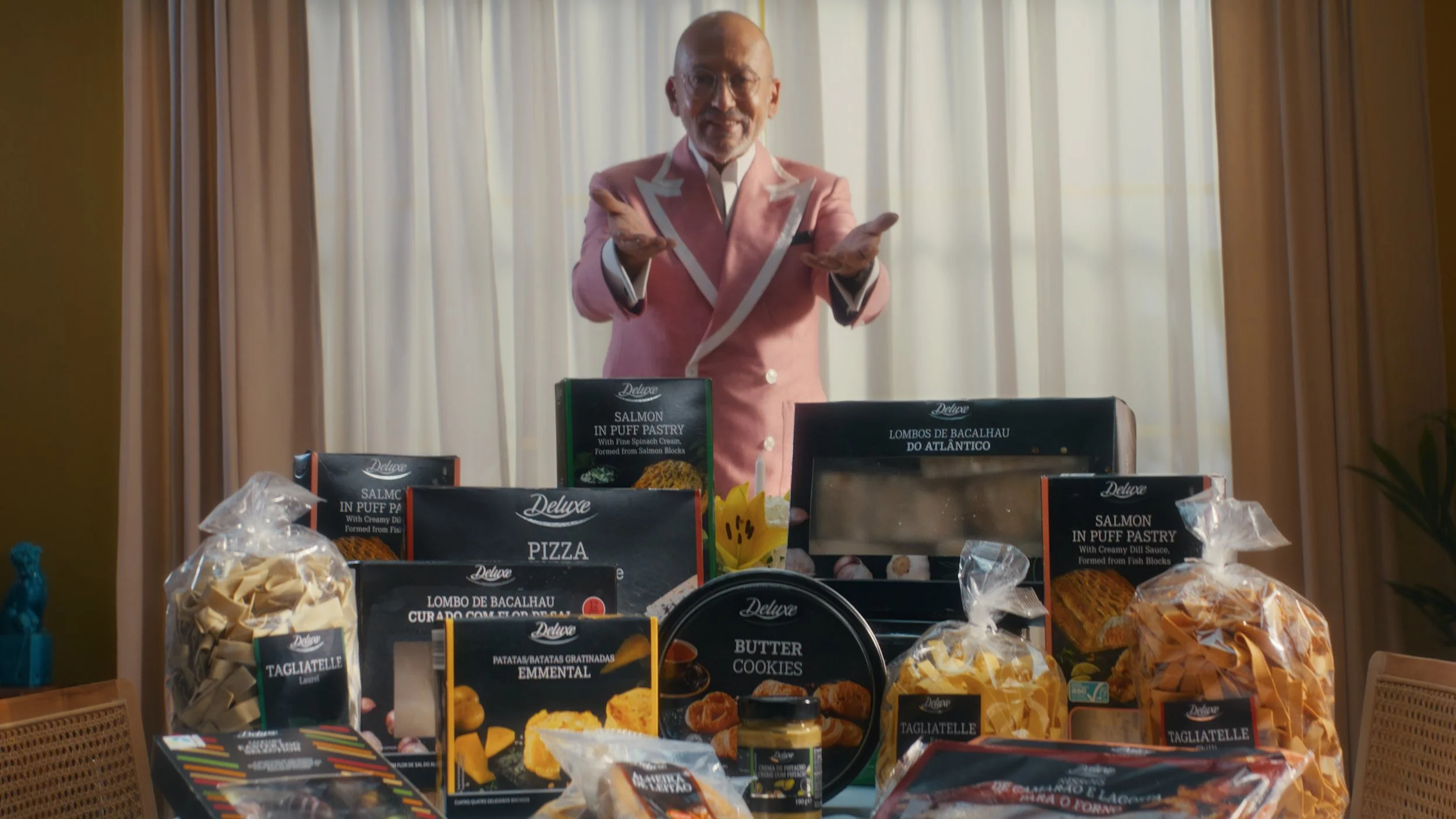 Two campaigns. One stages a well-known Portuguese cultural figure and his guests in domestic dining settings, with Deluxe products appearing unexpectedly throughout the scenes. The other casts an influencer in a mini-drama, dressed exclusively in her own collection.